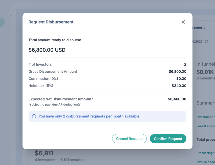 If you're raising under Reg CF, your investors' money lands in escrow first, and you wait for a close before it reaches your bank account. DealMaker’s new Disbursements feature puts you in complete control of that timing. It transforms the old back-and-forth coordination into a simple in-product flow that shows you exactly what you'll receive and lets you initiate a rolling close the moment you're ready.